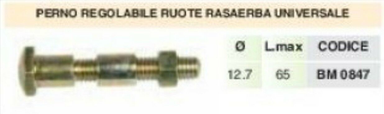 PERNO mozzo REGOLABILE PER RUOTA ruote TOSAERBA rasaerba Ø12.7 L 65 max